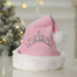 Nuevas decoraciones navideñas Holiday Adult Pink Crown Plush Santa Christmas Hat
